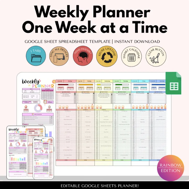 11. (Rainbow Edition) Weekly Planner One Week at a Time Spreadsheet by Umi Pauzi
